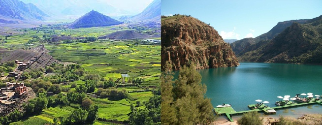 Morocco Berber Travel organizes tour from Marrakech with experienced drivers and guides. You may wish to explore the charm of the High Atlas mountains range and away from the noise of Marrakech, enjoy this 3 Days Atlas mountains,full of beautiful landscapes and pleasant enviable views. Ait bougmez valley,which named by French people happy valley according to its colourful fields of apple trees, walnuts and the large number of vegetables, in order to get to this paradise; we will start from your accommodations (riad or hotel) towards the first stop over Damnate so as to discovering Tassaout valley and the Mellah (Jewish city) then the natural bridge of Imi-n-Ifri,is a n,atural bridge like cave formed 180 million years,it is 200 m high lime stone.
