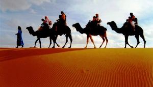 After breakfast, we will leave the hotel at 8:30 am and head towards Sahara desert Erg Chebbi. We will have a stop in Tinghir to take pictures; a fabulous place with beautiful palm trees, before arriving at Todgha Gorge, where we will walk between cliffs approximately 2500 metres high. It is a great place for rock climbing. We will have a delicious lunch before arriving at the Sahara desert where you will enjoy the beauty of the sand dunes and landscapes. Later, you will have a tea break in a hotel before leaving to ride camels in the desert. The night will be spent in the middle of the Sahara Desert in Berber tents enjoying the brilliance of the stars at night, and the gorgeous sunset.