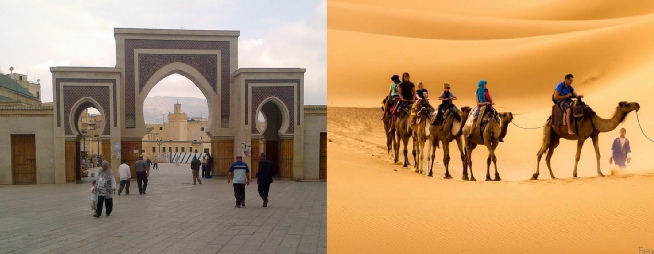 Morocco Berber Travel organizes tour to Sahara desert from Tangier with experienced drivers and guides to explore Sahara desert. You will be met on arrival at the port of Tangier and driven through the Rif mountains and Tetoun city to enjoy the spectacular scenery of the mountains, until we reach Chefchaouan , one of the stunning villages at the foot of the Rif mountains. Chefchaouen Medina has a Spanish-style square surrounded by many arts and crafts stores, roof-top restaurants and cafes where we will have lunch before continuing on to Fez, where we will spend the night.