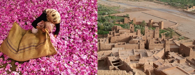 Morocco Berber Travel organizes tour from Marrakech. We will start our 3 Days New Year tour from Marrakech to desert towards Tizi n'Tichka, 2260 metres high, in the High Atlas mountains. We explore authentic Berber villages until we reach the majestic Telouat Kasbah. Then we discover Ait Benhaddou Unesco site and dominate the Kasbahs once you get to the top of the hill. It's classified since 1987. This fortified Kasbah is an attractive site for private tours and excursions departing from Marrakech. Because of it's beautiful architecture and natural decoration Ait Benhaddou Kasbah it becomes one of the famous locations that is used for movies shooting. such as "Gladiator", "Kingdom of heaven","Babel" & "Prince of Persia"... Later on we will visit Taourirt Kasbah in Ouarzazate then we pass Skoura palm trees, and the Rose Valley. We will have dinner and spend the night in Dades Gorge hotel.