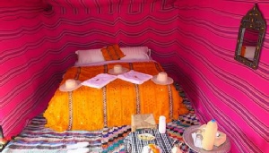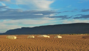 After breakfast, we will leave the hotel at 8:30 am and head towards Sahara desert Erg Chebbi. We will have a stop in Tinghir to take pictures; a fabulous place with beautiful palm trees, before arriving at Todgha Gorge, where we will walk between cliffs approximately 2500 metres high. It is a great place for rock climbing. We will have a delicious lunch before arriving at the Sahara desert where you will enjoy the beauty of the sand dunes and landscapes. Later, you will have a tea break in a hotel before leaving to ride camels in the desert. The night will be spent in the middle of the Sahara Desert in Berber tents enjoying the brilliance of the stars at night, and the gorgeous sunset.