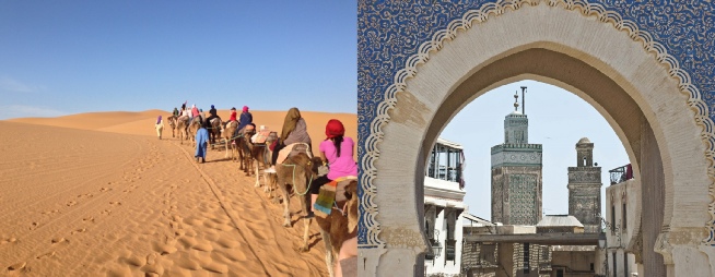 After breakfast we will ride our camels back to hotel, where we will freshen up before making our way to Fez. We will stop to enjoy the fabulous landscapes of Ziz valley on the way. We will enjoy the stunning scenery of the Atlas mountains, passing by Tizi-n-Talghoumt 1907 metres high. We will stop for lunch in the small town of Midelt, before stopping in the cedar forests of the middle Atlas mountains where we may see the Magot monkeys. We will also be passing through Ifrane, the first ski resort in Morocco, before continuing our journey to the Imperial City of Fez. Thank you for travelling with Morocco Berber Travel as your trusted travel company in Morocco for Marrakech tours, Fez desert tours, Casablanca culture tours and Tangier Morocco trips. The private tour from Marrakech can be modified depends on your requirements. Contact us for more details.