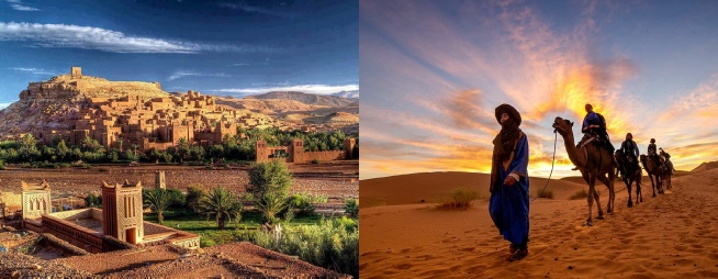 Wake up early to see the sunrise and return on camels to shower and breakfast at the hotel. Then start your journey to Ouarzazate . On the way; you will visit the Berber shops containing fossils, carpets, lamps, leather also cities and villages as Tinjdad, Todgha Gorges, with a detour to visit Todgha Gorge, the highest oasis valley gorge in Morocco, and Boumalene-du-Dades. Stop for lunch and continue your way to Ouarzazate. Arrive in the evening. Dinner and accommodation.