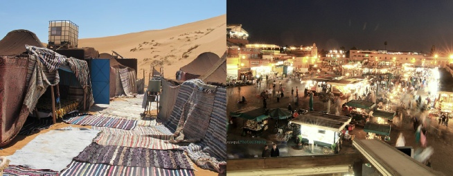 After break fast you will drive to reach amusing Sahara desert of Morocco,start first by Tizi N ait saouan 1262 meters high,on the eastern foothills of anti Atlas,and then driving down to Agdaz and stopping for photos in jebl kissane,continue the way of oued draa with palm grooves with its very old Kasbah on the road,previously the river was permenant,the longest and the widest on in morocco,then drive to N’kob, this area was capital and defensive place of Ait Atta in the conolize period,the Lunch in local restaurant,after lunch we will keep driving to Er-Rissani if we have enough time we will visit the mausoleum of Moulay Ali Chrif,it was rebuilt 1955.,then drive to beautiful and yellow sand dunes of Merzouga to spend the night in the middle of Sahara desert in Berber tent,before get to the desert you will have a cup of tea and ride camel to the bivouac.